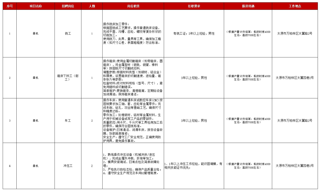 晉機(jī)集團(tuán)因工作需要,由山西晉鑫仁和人力資源管理有限公司公開(kāi)招聘數(shù)名勞務(wù)外包工作人員,具體公告如下: